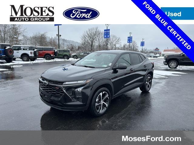 28/32 City/Highway MPGCARFAX One-Owner. Clean CARFAX.Certified.Certification Program Details: Ford Blue Advantage: Blue Certified* 139 Point Inspection* Transferable Warranty* Vehicle History* Warranty Deductible: $100* Roadside Assistance* Limited Warranty: 3 Month/4,000 Mile (whichever comes first) after new car warranty expires or from certified purchase date* and 11,000 FordPass Rewards Points to use toward first maintenance visitTrax 1RS, Ford Blue Advantage: Blue Certified Certified, 4D Sport Utility, 1.2L Ecotec Turbo DOHC DI w/VVT, 6-Speed Automatic, FWD, Mosaic Black Metallic, Jet Black/Gray With Red Accents Cloth.Moses Auto Group utilizes MARKET VALUE PRICING on all the vehicles in our inventory. We use real-time market data to ensure that all our customers enjoy a hassle-free buying experience and the best value possible. That, along with the largest selection of over 3500 quality cars, trucks, and SUVs in the tristate WV, KY, and OH area (as well as the surrounding cities of Charleston, Huntington, and Morgantown), has our loyal client base coming back again and again. Come to Moses today and experience the car-buying process as it should be- Driven By You.2024 Chevrolet Trax 1RSAwards: * Car and Driver 10 BestCar and Driver, January 2017.This 2024 Chevrolet Trax is well equipped with the following equipment...Driver Confidence Package (Lane Change Alert w/Side Blind Zone Alert and Rear Cross-Traffic Alert), Preferred Equipment Group 1RS, Trax 1RS, Ford Blue Advantage: Blue Certified Certified, 4D Sport Utility, 1.2L Ecotec Turbo DOHC DI w/VVT, 6-Speed Automatic, FWD, Mosaic Black Metallic, Jet Black/Gray With Red Accents Cloth, 2-Way Adjustable Front Head Restraints, 3.50 Final Drive Axle Ratio, 4 Speakers, 4-Speaker Audio System Feature, 4-Way Manual Front Passenger Seat Adjuster, 4-Wheel Disc Brakes, 6-Way Manual Driver Seat Adjuster, ABS brakes, Air Conditioning, Alloy wheels, AM/FM radio: SiriusXM, Auto High-beam Headlights, Brake assist, Bumpers: body-color, Cloth Seat Trim, Compass, Delay-off headlights, Driver door bin, Driver vanity mirror, Dual front impact airbags, Dual front side impact airbags, Electronic Stability Control, Emergency communication system: OnStar and Chevrolet connected services capable, Exterior Parking Camera Rear, Front anti-roll bar, Front Bucket Seats, Front Center Armrest, Front reading lights, Front wheel independent suspension, Fully automatic headlights, Heated door mirrors, Heated Driver & Front Passenger Seats, Heated front seats, Heated steering wheel, Illuminated entry, Low tire pressure warning, Occupant sensing airbag, Outside temperature display, Overhead airbag, Overhead console, Panic alarm, Passenger door bin, Passenger vanity mirror, Power door mirrors, Power steering, Power windows, Premium audio system: Chevrolet Infotainment 3, Radio data system, Radio: Chevrolet Infotainment 3 System w/AM/FM, Rear Park Assist (DISC), Rear window defroster, Rear window wiper, Remote keyless entry, Security system, SiriusXM, Speed control, Split folding rear seat, Spoiler, Sport steering wheel, Steering wheel mounted audio controls, Tachometer, Telescoping steering wheel, Tilt steering wheel, Traction control, Trip computer, Variably intermittent wipers, and Wheels: 18 Black-Painted Machined Aluminum Want your customer experience to be as unrivaled as your next BMW? Discover the Difference at Moses BMW where friendly, professional associates simplify your buying experience and provide real value. See our Google and Cars.com reviews to hear why even out-of-state customers say they will drive over 500 miles again to experience our friendly and fast service. Call (304)722-4900 today to set your VIP appointment with one of our experienced managers to help you find your perfect match today.