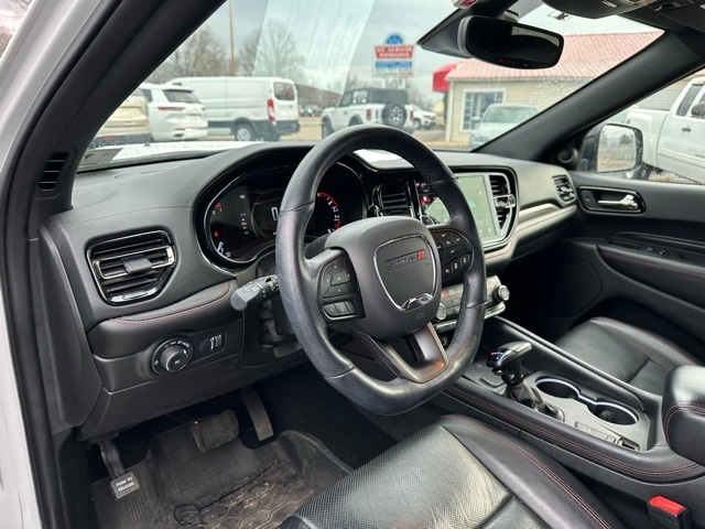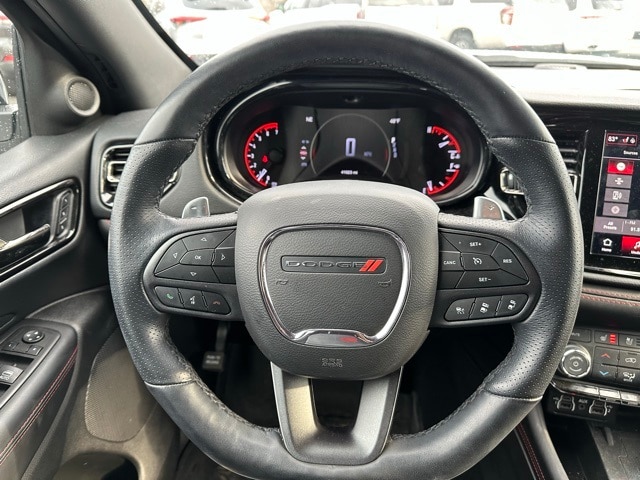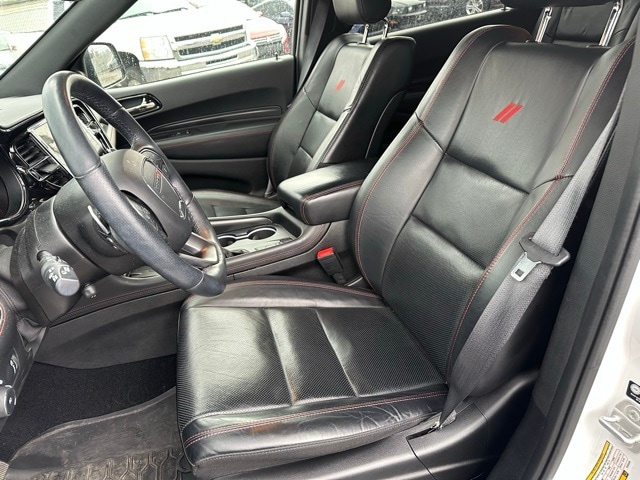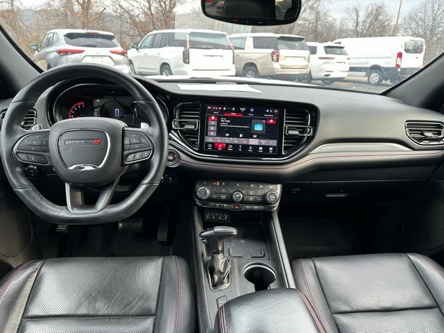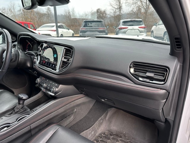 This 2023 Dodge Durango is well equipped with the following equipment...Blacktop Package (Black Roof Rails, Gloss Black Badges, Gloss Black Exterior Mirrors, Integrated Roof Rail Crossbars, and Satin Black Dodge Tail Lamp Badge), Quick Order Package 22T R/T Plus (115V Auxiliary Power Outlet, 7 & 4 Pin Wiring Harness, Adaptive Cruise Control w/Stop, Auto-Dimming Exterior Driver Mirror, Class IV Receiver Hitch, Dual Remote USB Port - Charge Only, Exterior Mirrors w/Heating Element, Exterior Mirrors w/Memory, Exterior Mirrors w/Supplemental Signals, Floor Console w/Leather Armrest, Full Speed Forward Collision Warning Plus, Heated Second Row Seats, Leather Trimmed Bucket Seats, Leather Wrapped Door Panels, LED Auxiliary Low Beam & Turn Signal, Power 6x9 Multi-Function Foldaway Mirrors, Power 8-Way Driver Memory 8-Way Passenger Seats, Power Driver/Passenger 4-Way Lumbar Adjust, Power Sunroof, Power Tilt & Telescopic Steering Column, Premium LED Fog Lamps, Radio/Driver Seat/Mirrors Memory, Red Accent Stitching, Trailer Brake Control, and Ventilated Front Seats), Durango R/T Plus, Ford Blue Advantage: Blue Certified Certified, 4D Sport Utility, HEMI 5.7L V8 Multi Displacement VVT, 8-Speed Automatic, AWD, White Knuckle Clearcoat, Black Leather, 3.09 Rear Axle Ratio, 3rd row seats: split-bench, 4-Wheel Disc Brakes, 9 Speakers, ABS brakes, Air Conditioning, Alloy wheels, AM/FM radio: SiriusXM w/360L, Apple CarPlay/Android Auto, Auto High-beam Headlights, Auto-dimming Rear-View mirror, Auto-leveling suspension, Automatic temperature control, Brake assist, Bumpers: body-color, Cloth Bucket Seats w/Shift Insert, Compass, Delay-off headlights, Driver door bin, Driver vanity mirror, Dual front impact airbags, Dual front side impact airbags, Electronic Stability Control, Emergency communication system: SiriusXM Guardian, Four wheel independent suspension, Front anti-roll bar, Front Bucket Seats, Front Center Armrest w/Storage, Front dual zone A/C, Front reading lights, Fully automatic headlights, Garage door transmitter, Heated door mirrors, Heated front seats, Heated steering wheel, Illuminated entry, Knee airbag, Leather steering wheel, Low tire pressure warning, Navigation system: TomTom, Occupant sensing airbag, Outside temperature display, Overhead airbag, Overhead console, Panic alarm, ParkView Rear Back-Up Camera, Passenger door bin, Passenger vanity mirror, Power door mirrors, Power driver seat, Power Liftgate, Power steering, Power windows, Radio data system, Radio: Uconnect 5 Nav w/10.1" Display, Rain sensing wipers, Rear air conditioning, Rear anti-roll bar, Rear Load Leveling Suspension, Rear reading lights, Rear se