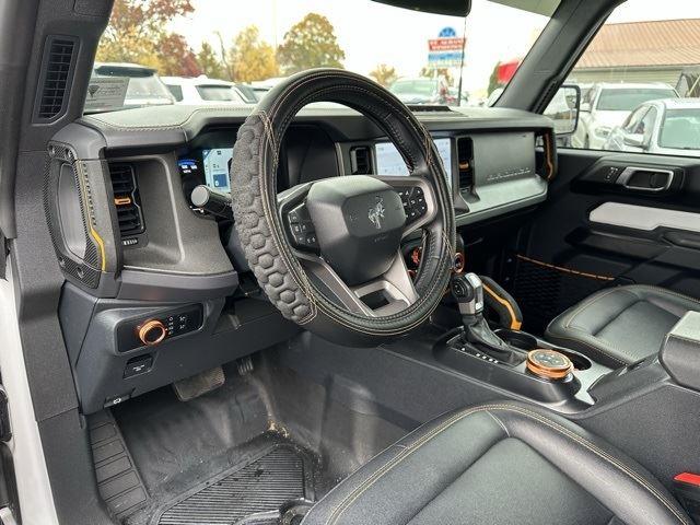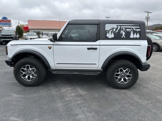 CARFAX One-Owner. Clean CARFAX.Certified.Certification Program Details: Ford Blue Advantage: Blue Certified* 139 Point Inspection* Transferable Warranty* Vehicle History* Warranty Deductible: $100* Roadside Assistance* Limited Warranty: 3 Month/4,000 Mile (whichever comes first) after new car warranty expires or from certified purchase date* and 11,000 FordPass Rewards Points to use toward first maintenance visitBronco Badlands, Ford Blue Advantage: Blue Certified Certified, 2D Sport Utility, 2.7L EcoBoost V6, 10-Speed Automatic, 4WD, Oxford White, Black Onyx Vinyl.Moses Auto Group utilizes MARKET VALUE PRICING on all the vehicles in our inventory. We use real-time market data to ensure that all our customers enjoy a hassle-free buying experience and the best value possible. That, along with the largest selection of over 3500 quality cars, trucks, and SUVs in the tristate WV, KY, and OH area (as well as the surrounding cities of Charleston, Huntington, and Morgantown), has our loyal client base coming back again and again. Come to Moses today and experience the car-buying process as it should be- Driven By You.2024 Ford Bronco BadlandsThis 2024 Ford Bronco is well equipped with the following equipment...Equipment Group 331A Standard Package, Bronco Badlands, Ford Blue Advantage: Blue Certified Certified, 2D Sport Utility, 2.7L EcoBoost V6, 10-Speed Automatic, 4WD, Oxford White, Black Onyx Vinyl, 4-Wheel Disc Brakes, 4.7 Axle Ratio, 7 Speakers, ABS brakes, Air Conditioning, Alloy wheels, AM/FM radio: SiriusXM with 360L, AM/FM Stereo, Auto High-beam Headlights, Brake assist, Compass, Convertible HardTop, Convertible roof lining, Delay-off headlights, Driver door bin, Driver vanity mirror, Dual front impact airbags, Dual front side impact airbags, Electronic Stability Control, Emergency communication system: 911 Assist, Exterior Parking Camera Rear, Front & Rear Floor Liners w/o Carpet Floor Mats, Front anti-roll bar, Front Bucket Seats, Front Center Armrest, Front reading lights, Front wheel independent suspension, Fully automatic headlights, Glass rear window, Heated door mirrors, Illuminated entry, Integrated roll-over protection, Leather Shift Knob, Low tire pressure warning, Marine Grade Vinyl Bucket Seats, Occupant sensing airbag, Outside temperature display, Overhead airbag, Overhead console, Panic alarm, Passenger door bin, Passenger vanity mirror, Power door mirrors, Power steering, Power windows, Radio data system, Rear window defroster, Rear window wiper, Remote keyless entry, Security system, SiriusXM Radio w/360L, Speed control, Split folding rear seat, Steering wheel mounted audio controls, SYNC 4, Tachometer, Telescoping steering wheel, Tilt steering wheel, Traction control, Trip computer, Variably intermittent wipers, Voltmeter, and Wheels: 17 Machined Carbonized Aluminum Want your customer experience to be as unrivaled as your next BMW? Discover the Difference at Moses BMW where friendly, professional associates simplify your buying experience and provide real value. See our Google and Cars.com reviews to hear why even out-of-state customers say they will drive over 500 miles again to experience our friendly and fast service. Call (304)722-4900 today to set your VIP appointment with one of our experienced managers to help you find your perfect match today.