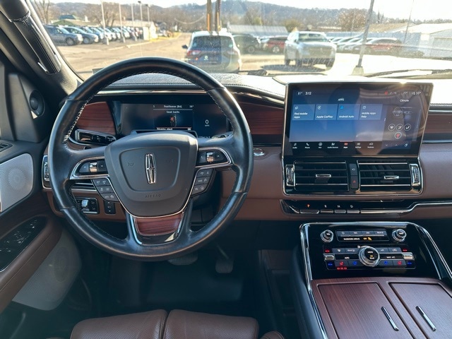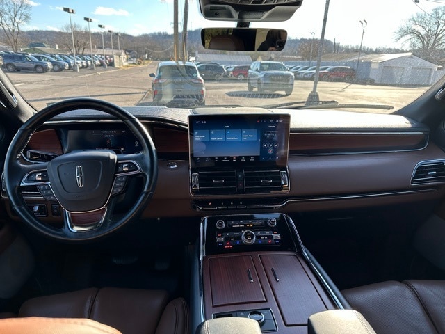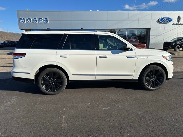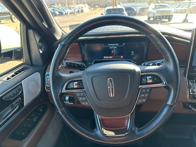 This 2023 Lincoln Navigator is well equipped with the following equipment...Equipment Group 201A Reserve I, Luxury Package (Illuminated 1st & 2nd Row Seat Belts, Lincoln Lit Star in Grille, Perfect Position Seats (30-Way) w/Active Motion, and Radio: Revel Ultima 3D Audio System w/28 Speakers), Monochromatic Package (Body-Color Exterior Mirror Finish, Monochromatic Lincoln Badge, Monochromatic Lincoln Grille, and Wheels: 22" Black Aluminum), Navigator Reserve, 4D Sport Utility, V6, 10-Speed Automatic, 4WD, Pristine White Metallic Tri-Coat, Black Onyx/Roast Leather, 14 Speakers, 2nd Row Htd/Vent Enhcd Massage Seats w/out Console, 3.73 Axle Ratio, 3rd row seats: split-bench, 4-Wheel Disc Brakes, ABS brakes, Active Park Assist 2.0 Delete, Adaptive suspension, Adjustable pedals, Air Conditioning, All-Weather Floor Liners w/Carpet Floor Mats, Alloy wheels, AM/FM radio: SiriusXM with 360L, Audio memory, Auto High-beam Headlights, Auto Start-Stop Technology, Auto tilt-away steering wheel, Auto-dimming door mirrors, Auto-dimming Rear-View mirror, Auto-leveling suspension, Automatic temperature control, Bodyside moldings, Brake assist, Bumpers: body-color, Chrome Roof Rack w/Black Crossbars, Compass, Delay-off headlights, Driver door bin, Driver vanity mirror, Driver's Seat Mounted Armrest, Dual front impact airbags, Dual front side impact airbags, Electronic Stability Control, Emergency communication system: 911 Assist, Exterior Parking Camera Rear, Four wheel independent suspension, Front anti-roll bar, Front Bucket Seats, Front dual zone A/C, Front fog lights, Front reading lights, Fully automatic headlights, Garage door transmitter, Genuine wood dashboard insert, Genuine wood door panel insert, Hands-Free Liftgate Delete, Head restraints memory, Heads-Up Display, Heated door mirrors, Heated front seats, Heated rear seats, Heated steering wheel, HVAC memory, Illuminated entry, Leather steering wheel, Low tire pressure warning, Memory seat, Navigation system: Connected Navigation (3-year trial), Occupant sensing airbag, Outside temperature display, Overhead airbag, Overhead console, Panic alarm, Passenger door bin, Passenger seat mounted armrest, Passenger vanity mirror, Pedal memory, Power adjustable rear head restraints, Power door mirrors, Power driver seat, Power Liftgate, Power moonroof: Panoramic Vista Roof, Power passenger seat, Power steering, Power windows, Prem Lthr Auto Htd/Ventiltd Perfect Position Seats, Radio data system, Radio: Revel AM/FM/HD/MP3 Audio System, Rain sensing wipers, Rear air conditioning, Rear anti-roll bar, Rear audio controls, Rear reading lights, Rear window defroster, Rear window wiper, Reclining 3rd row seat, Remote keyless entry, Security system, SiriusXM w/360L,