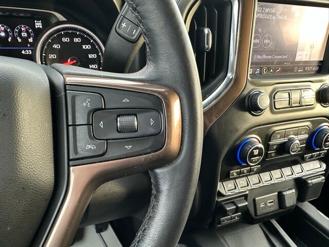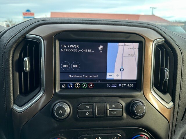 This 2020 Chevrolet Silverado 1500 is well equipped with the following equipment...High Country Deluxe (All-Weather Floor Liner (LPO) and Power Sunroof), Preferred Equipment Group 3LZ (10-Way Power Driver Seat w/Lumbar, 10-Way Power Passenger Seat Adjuster w/Lumbar, 12-Volt Rear Auxiliary Power Outlet, 120-Volt Bed Mounted Power Outlet, 120-Volt Instrument Panel Power Outlet, 2nd Row Heated Outboard Seats, 4G LTE Wi-Fi Hot Spot Capable, 8" Driver Information Center, Advanced Trailering System, Auto-Dimming Inside Rear-View Mirror, Auxiliary External Transmission Oil Cooler, Bluetooth® For Phone, Chevrolet Connected Access Capable, Chevytec Spray-On Black Bedliner, Chrome Assist Steps, Chrome Grille, Chrome Recovery Hooks, Color-Keyed Carpeting Floor Covering, Compass, Deep-Tinted Glass, Driver Memory, Dual Exhaust w/Polished Outlets, Electric Rear-Window Defogger, Electrical Lock Control Steering Column, Floor Mounted Center Console, Front Carpeted Floor Mats, Front LED Fog Lamps, HD Radio, HD Rear Vision Camera, Heated Driver & Front Outboard Passenger Seats, Heated Steering Wheel, Heavy-Duty Rear Locking Differential, Hitch Guidance, Hitch Guidance w/Hitch View, Integrated Trailer Brake Controller, Keyless Open & Start, Lane Change Alert w/Side Blind Zone Alert, Leather Wrapped Steering Wheel, LED Cargo Area Lighting, Manual Tilt/Telescoping Steering Column, OnStar & Chevrolet Connected Services Capable, Outside Heated Power-Adjustable Mirrors, Painted Mirror Caps, Power Door Locks, Power Front Passenger Windows w/Express Up/Down, Power Front Windows w/Driver Express Up/Down, Power Rear Windows w/Express Down, Power Sliding Rear Window w/Rear Defogger, Rear Carpeted Floor Mats, Rear Cross Traffic Alert, Rear Dual USB Charging-Only Ports, Rear Wheelhouse Liners, Remote Vehicle Starter System, SiriusXM w/360L, Steering Wheel Audio Controls, Steering Wheel Mounted Electronic Cruise Control, Theft Deterrent System (Unauthorized Entry), Ultrasonic Front & Rear Park Assist, Universal Home Remote, Ventilated Driver & Front Passenger Seats, and Wireless Charging), Safety Package II (Adaptive Cruise Control - Camera, Automatic Emergency Braking, Following Distance Indicator, Forward Collision Alert, Front Pedestrian Braking, IntelliBeam Automatic High Beam On/Off, Lane Keep Assist w/Lane Departure Warning, and Safety Alert Seat), Trailering Package, Up-Level Rear Seat w/Storage Package, Silverado 1500 High Country, 4D Crew Cab, EcoTec3 6.2L V8, 10-Speed Automatic, 4WD, Satin Steel Metallic, Jet Black Leather, 170 Amps Alternator, 3.23 Rear Axle Ratio, 4-Wheel Disc Brakes, 7 Speakers, ABS brakes, Air Conditioning, Alloy wheels, AM/FM radio: SiriusXM with 360L, Apple CarPlay/Android Auto, Auto-dimming door mirrors, Auto-dimming Rear-View mirror, Automatic temperature control, Brake assist, Bumpers: body-color, Delay-off headlights, Driver door bin, Driver vanity mirror, Dual front impact airbags, Dual front side impact airbags, Electronic Stability Control, Front anti-roll bar, Front Bucket Seats, Front Center Armrest, Front dual zone A/C, Front fog lights, Front reading lights, Front wheel independent suspension, Fully automatic headlights, Garage d