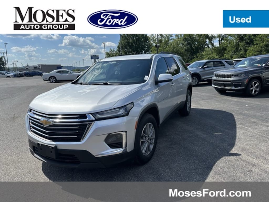 This 2022 Chevrolet Traverse is well equipped with the following equipment...Floor Liner Package (LPO) (1st & 2nd Row All-Weather Floor Liner (LPO), 3rd Row All-Weather Floor Liner (LPO), and Integrated Cargo Liner (LPO)), Front License Plate Bracket Mounting Package, Trailering Equipment (Heavy-Duty Cooling System and Trailering Assist Guidelines), Traverse LT Cloth w/2FL, 4D Sport Utility, 3.6L V6 SIDI VVT, 9-Speed Automatic, AWD, Silver Ice Metallic, Black Cloth, 2-Way Manual Front Passenger Seat Adjuster, 3.49 Axle Ratio, 3rd row seats: split-bench, 4-Wheel Disc Brakes, 6 Speakers, 6-Speaker Audio System Feature, 8-Way Power Driver Seat Adjuster, ABS brakes, Air Conditioning, Alloy wheels, AM/FM radio: SiriusXM, Apple CarPlay/Android Auto, Auto High-beam Headlights, Automatic temperature control, Brake assist, Bumpers: body-color, Compass, Delay-off headlights, Driver door bin, Driver vanity mirror, Dual front impact airbags, Dual front side impact airbags, Electronic Stability Control, Emergency communication system: OnStar Guidance, Exterior Parking Camera Rear, Four wheel independent suspension, Front anti-roll bar, Front Bucket Seats, Front Center Armrest, Front dual zone A/C, Front reading lights, Fully automatic headlights, Heated door mirrors, Illuminated entry, Leather steering wheel, Low tire pressure warning, Not Equipped w/Rear Park Assist, Occupant sensing airbag, Outside temperature display, Overhead airbag, Overhead console, Panic alarm, Passenger door bin, Passenger vanity mirror, Power door mirrors, Power Driver Lumbar Control, Power driver seat, Power steering, Power windows, Premium Cloth Seat Trim, Radio data system, Radio: Chevrolet Infotainment System AM/FM Stereo, Rear air conditioning, Rear anti-roll bar, Rear Park Assist w/Audible Warning, Rear reading lights, Rear window defroster, Rear window wiper, Remote keyless entry, Roof rack: rails only, Security system, SiriusXM Radio, Speed control, Speed-sensing steering, Spoiler, Steering wheel mounted audio controls, Tachometer, Telescoping steering wheel, Tilt steering wheel, Traction control, Trip computer, Turn signal indicator mirrors, Variably intermittent wipers, Voltmeter, and Wheels: 18" Bright Silver-Painted Aluminum Want your customer experience to be as unrivaled as your next BMW? Discover the Difference at Moses BMW where friendly, professional associates simplify your buying experience and provide real value. See our Google and Cars.com reviews to hear why even out-of-state customers say they will drive over 500 miles again to experience our friendly and fast service. Call (304)722-4900 today to set your VIP appointment with one of our experienced managers to help you find your perfect match today.