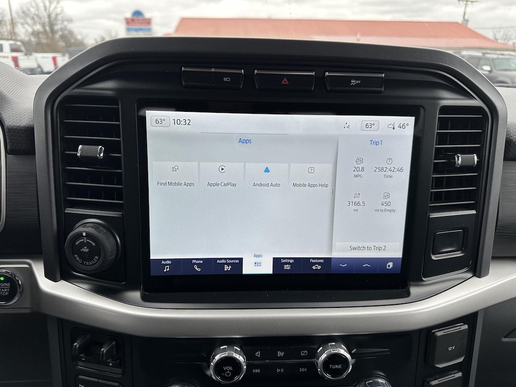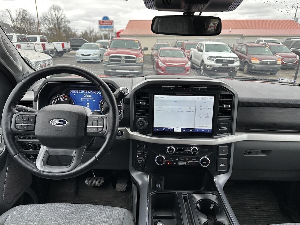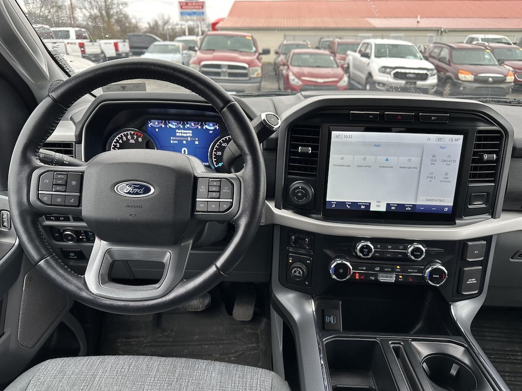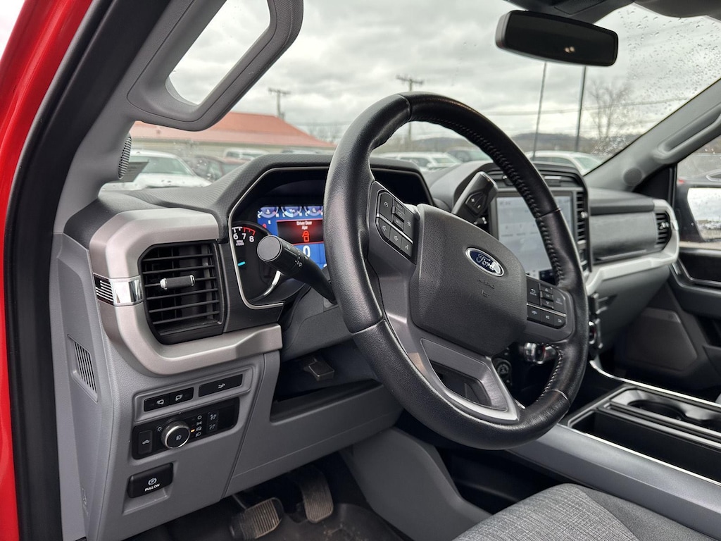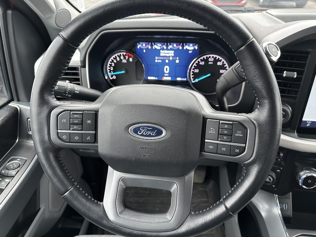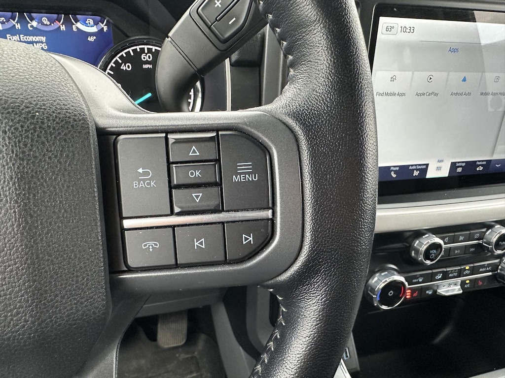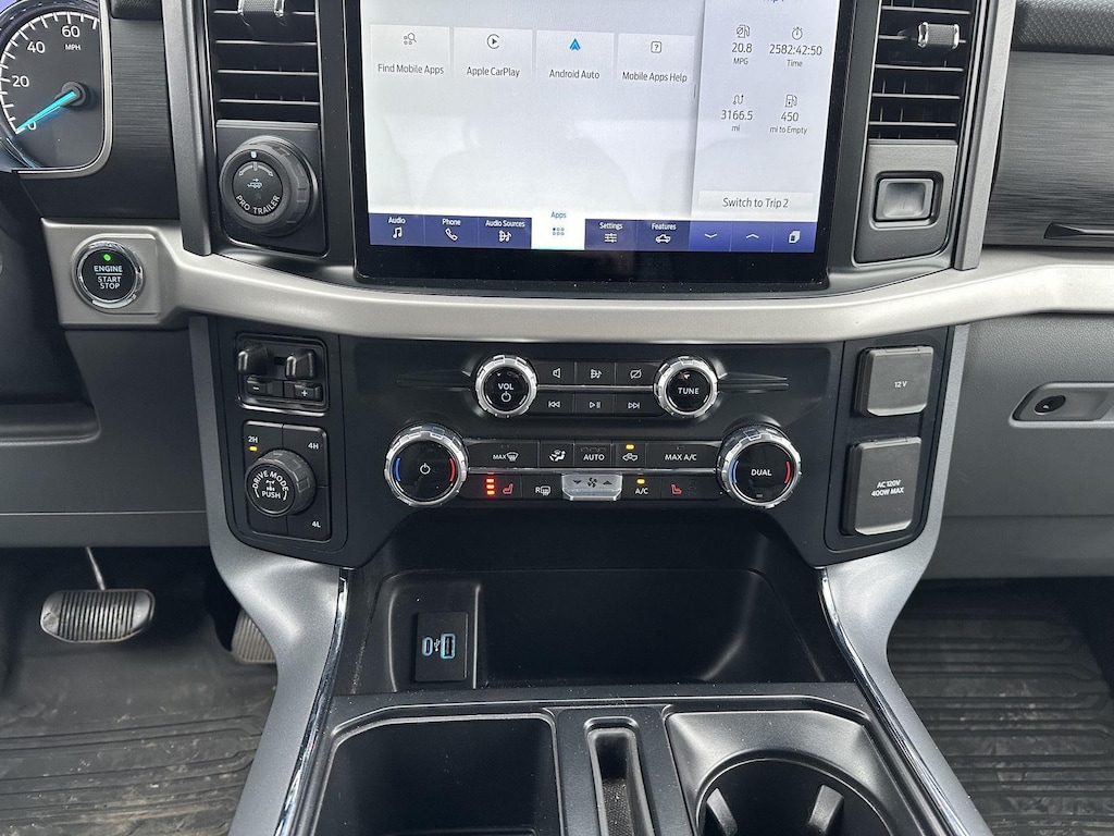 - Includes vehicle with standard equipment, SYNC 4 with enhanced conversational voice recognition, 12 in. LCD capacitive touchscreen, information on demand panel, 8 inch productivity screen in instrument cluster, SiriusXM with 360L, connected navigation, wireless Apple CarPlay, wireless Android Auto, cloud connected, AppLink, 911 Assist, 7 speakers, digital owners manual, dual-zone electronic automatic temperature control, 10-way power adjustable front seats with power lumbar adjustment, heated front seats, leather-wrapped steering wheel, rear under-seat storage, 110V/400W outlet in the instrument panel and pickup bed, auto-dimming rearview mirror, manual-folding power heated side view mirrors with LED integrated turn signals and security approach lamps, LED reflector headlamps, LED cornering fog lamps, Intelligent Access with push button start, remote engine start, remote tailgate release, SecuriCode keyless entry keypad, Class IV trailer hitch, 4-pin and 7-pin wiring, and smart trailer tow connector.