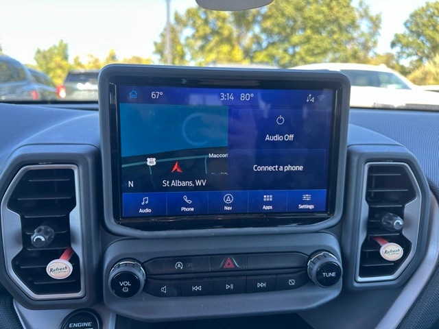 This 2023 Ford Bronco Sport is well equipped with the following equipment...Convenience Package (Front Driver & Passenger Seatback Zipper Pockets, Heated Front Bucket Seats, Intelligent Access (Lock/Unlock), Leather-Wrapped Steering Wheel, LED Fog Lamps, Rear Parking Sensors, Universal Garage Door Opener (UGDO), and Wireless Charging Pad), Equipment Group 200A, Ford Co-Pilot360 Assist+ (Evasive Steering Assist, Intelligent Adaptive Cruise Control w/Stop & Go, and Voice-Activated Touchscreen Navigation System), Bronco Sport Big Bend, 4D Sport Utility, 1.5L EcoBoost, 8-Speed Automatic, 4WD, Green Metallic, Medium Dark Slate Cloth, 3.80 Axle Ratio, 4-Wheel Disc Brakes, 6 Speakers, ABS brakes, Air Conditioning, Alloy wheels, AM/FM radio: SiriusXM, AM/FM Stereo, Auto High-beam Headlights, Automatic temperature control, Brake assist, Compass, Delay-off headlights, Driver door bin, Driver vanity mirror, Dual front impact airbags, Dual front side impact airbags, Electronic Stability Control, Emergency communication system: SYNC 3 911 Assist, Four wheel independent suspension, Front & Rear Floor Liners, Front anti-roll bar, Front Bucket Seats, Front Center Armrest, Front reading lights, Fully automatic headlights, Heated door mirrors, Illuminated entry, Knee airbag, Low tire pressure warning, Occupant sensing airbag, Outside temperature display, Overhead airbag, Overhead console, Panic alarm, Passenger door bin, Passenger vanity mirror, Power door mirrors, Power steering, Power windows, Radio data system, Rear anti-roll bar, Rear reading lights, Rear seat center armrest, Rear window defroster, Rear window wiper, Remote keyless entry, Security system, SiriusXM, Speed control, Speed-sensing steering, Speed-Sensitive Wipers, Split folding rear seat, Steering wheel mounted audio controls, SYNC 3 Communications & Entertainment System, SYNC 3/Apple CarPlay/Android Auto, Tachometer, Telescoping steering wheel, Tilt steering wheel, Traction control, Trip computer, Unique Cloth Front Bucket Seats, Variably intermittent wipers, Wheels: 17" Carbonized Gray-Painted Aluminum, and Wheels: 18" Ebony Black-Painted Aluminum Want your customer experience to be as unrivaled as your next BMW? Discover the Difference at Moses BMW where friendly, professional associates simplify your buying experience and provide real value. See our Google and Cars.com reviews to hear why even out-of-state customers say they will drive over 500 miles again to experience our friendly and fast service. Call (304)722-4900 today to set your VIP appointment with one of our experienced managers to help you find your perfect match today.