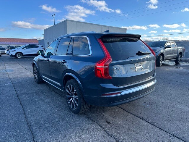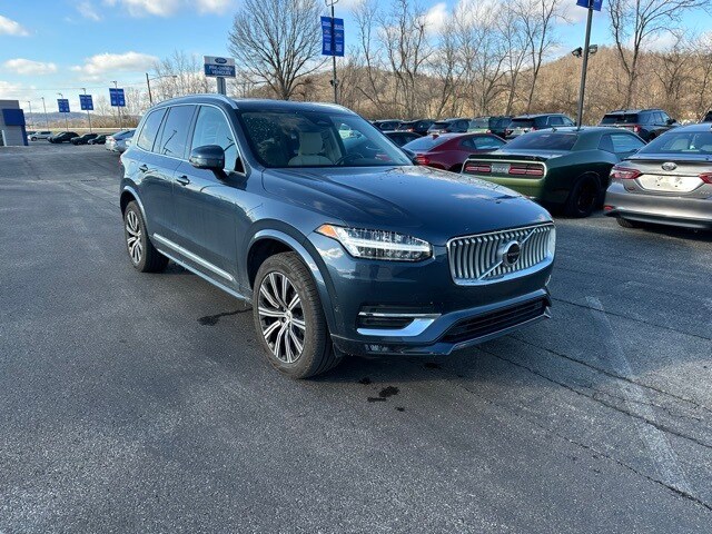 This 2024 Volvo XC90 is well equipped with the following equipment...XC90 B5 Plus, 4D Sport Utility, 2.0L I4 Turbocharged DOHC 16V LEV3-ULEV70, Automatic with Geartronic, AWD, Denim Blue Metallic, Blond Leather, 10 Speakers, 3rd row seats: bucket, 4-Wheel Disc Brakes, ABS brakes, Air Conditioning, Alloy wheels, AM/FM radio: SiriusXM, Anti-whiplash front head restraints, Apple CarPlay, Auto High-beam Headlights, Auto-dimming door mirrors, Auto-dimming Rear-View mirror, Automatic temperature control, Brake assist, Bumpers: body-color, Delay-off headlights, Driver door bin, Driver vanity mirror, Dual front impact airbags, Dual front side impact airbags, Electronic Stability Control, Emergency communication system: Volvo Cars App w/4 Year Subscription, Exterior Parking Camera Rear, Four wheel independent suspension, Front anti-roll bar, Front Bucket Seats, Front Center Armrest w/Storage, Front dual zone A/C, Front fog lights, Front reading lights, Fully automatic headlights, Garage door transmitter: HomeLink, Genuine wood dashboard insert, Genuine wood door panel insert, Headlight cleaning, Heated door mirrors, Heated Front Bucket Seats, Heated front seats, Heated rear seats, Heated steering wheel, Illuminated entry, Integrated rear child seats, Knee airbag, Leather Shift Knob, Leather Upholstery, Low tire pressure warning, Memory seat, Navigation System, Occupant sensing airbag, Outside temperature display, Overhead airbag, Panic alarm, Passenger door bin, Passenger vanity mirror, Power door mirrors, Power driver seat, Power Liftgate, Power moonroof, Power passenger seat, Power steering, Power windows, Radio data system, Radio: High Performance Audio System, Rain sensing wipers, Rear air conditioning, Rear anti-roll bar, Rear dual zone A/C, Rear fog lights, Rear reading lights, Rear seat center armrest, Rear window defroster, Rear window wiper, Remote keyless entry, Security system, Speed control, Speed-sensing steering, Split folding rear seat, Spoiler, Steering wheel mounted audio controls, Tachometer, Telescoping steering wheel, Traction control, Trip computer, Turn signal indicator mirrors, Variably intermittent wipers, and Wheels: 20" 10-Spoke Black Diamond Cut Alloy Want your customer experience to be as unrivaled as your next BMW? Discover the Difference at Moses BMW where friendly, professional associates simplify your buying experience and provide real value. See our Google and Cars.com reviews to hear why even out-of-state customers say they will drive over 500 miles again to experience our friendly and fast service. Call (304)722-4900 today to set your VIP appointment with one of our experienced managers to help you find your perfect match today.